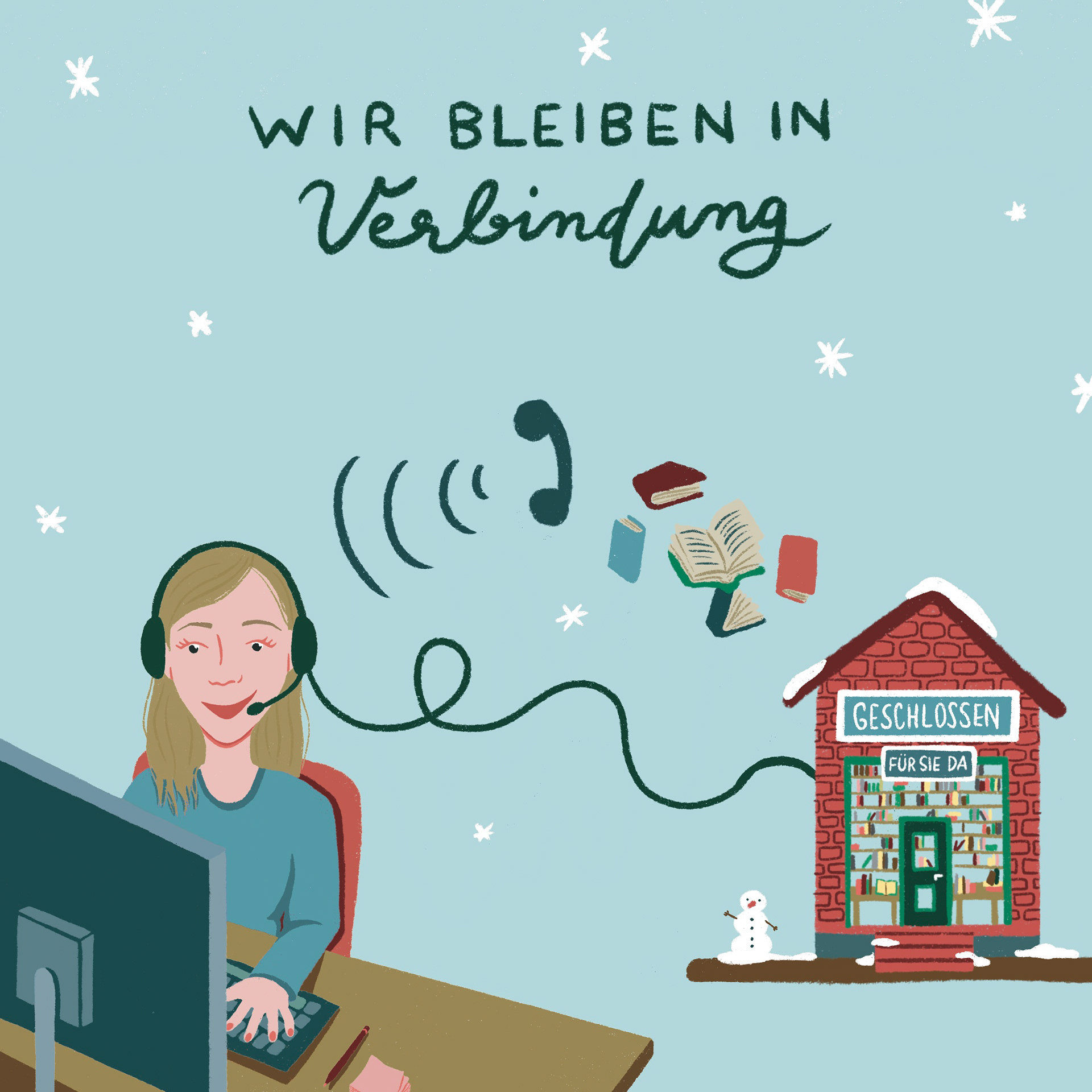 Das Unternehmen Buchmando, welches telefonischen Kundenservice für Buchhandlungen anbietet, hat mich beauftragt eine Weihnachtskarte für ihre Kunden zu gestalten. Passend zu ihrer Dienstleistung entstand eine Illustration einer Mitarbeiterin, die in der Ferne für eine Buchhandlung Telefonate annimmt. Darüberhinaus entstanden weitere Illustrationen angepasst an die Saison, eine winterliche Version sowie eine Osterversion. Diese wurden auf den Social Media Accounts des Unternehmens veröffentlicht.